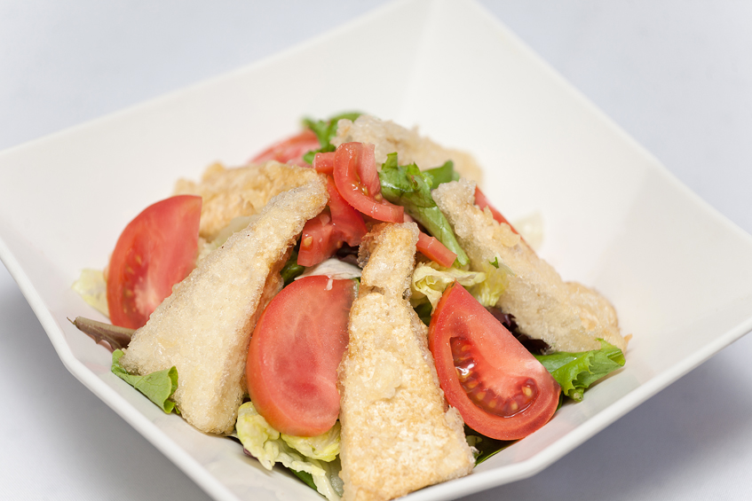 Deep-fried tofu, spring mix with house sauce.